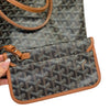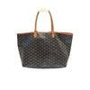 This is an authentic Goyard Saint Louis PM Goyardine Canvas in Brown. This chic handbag is made of Goyard's signature coated canvas. It has brown leather straps, a removable pouch, and a broad open top that opens to a spacious off-white canvas interior.