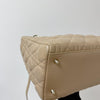 It carries a rating condition of 9/10. This bag is in great condition, and ready for a rendezvous out. The geometric quilted lambskin leather exterior is in great condition with minor signs of wear. The interior is clean, while the top handles and long detachable strap are in excellent condition. The hardware shows signs of wear and hairline scratches.