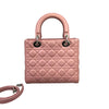 This Lady Dior bag comes in a beautiful Powder Pink. It features silver hardware and a zipper top that opens to a classy interior Dior monogram jacquard fabric. This classic bag can be used throughout the day but is perfect for your evening socials. Get this bag in Excellent condition for a fraction of the retail cost.