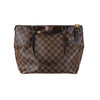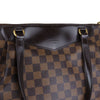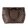 This stylish Westminster GM tote is finely crafted of signature Louis Vuitton Damier canvas. The bag features dark chocolate brown rolled leather top handles and polished gold hardware. The top zipper opens to a rouge red microfiber interior.