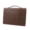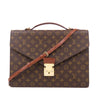 The Louis Vuitton Porte Documents Bandouliere features a monogram canvas body, a flat leather handle, a detachable flat leather strap, a front flap with a push lock closure and interior slip compartment and zip pocket.