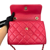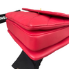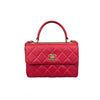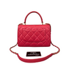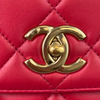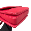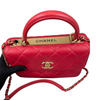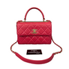 This Chanel Small Trendy CC Flap Lambskin Quilted in red is a stunning piece. It features a lambskin leather exterior, a leather top handle, and a chain and leather strap. This beauty can be worn as a top handle, or a shoulder bag.
