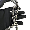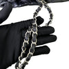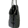 This is an authentic Chanel Love Me Tender Tote Large Calfskin in Black. This stylish shoulder bag is crafted of calfskin leather and features silver chain link leather threaded shoulder straps with shoulder pads. The front is trimmed with a silver Chanel CC Mademoiselle logo and matching silver feet. The top is open to a fabric partitioned interior with zipper and patch pockets.