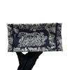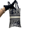 This is an authentic Christian Dior Book Tote Small Dioriviera Toile De Jouy Canvas Embroidered in Blue. This vibrant tote is made from embroidered canvas, showcasing a striking jungle design in blue. It features sturdy canvas handles and the Christian Dior logo elegantly embroidered on the front. The bag opens to a spacious interior.