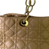 This is an authentic Christian Dior Soft Shopping Tote Large Lambskin in Beige. This stunning large tote is beautifully made of lambskin leather. The bag features gold chain link shoulder straps joined with a leather shoulder pad and gold signature Dior letters charm. The top is open to a partitioned beige fabric interior with a central zippered pocket.
