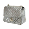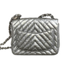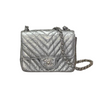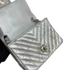 Patent Crumpled Calfskin Chevron Mini Square Flap Silver