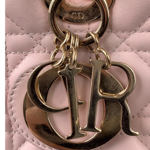 This Lady Dior in size medium comes in light pink lambskin leather featuring Gold hardware. This classic bag can be used throughout the day but is perfect for your evening socials. Authentic: Christian Dior Style: Lady DiorMaterial: Lambskin LeatherHardware: GoldSerial Number: 2013Measurements: 9.5" L x 4.5" W...