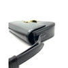 Introducing the authentic Celine Triomph Shiny Calfskin shoulder bag in elegant black adorned with gold hardware. Crafted from smooth calfskin leather, the bag features an adjustable leather shoulder strap and a matching gold press lock on the crossover flap. Unlock the flap to reveal a partitioned interior in black leather, complete with a convenient zipper pocket. A perfect blend of style and functionality.