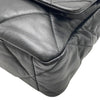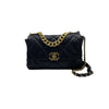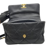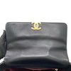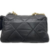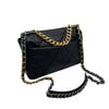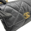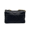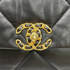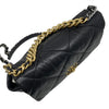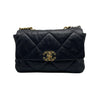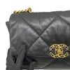 This is an authentic Chanel 19 Flap Medium Goatskin Quilted in Black. This pillowy soft shoulder bag is made of Goatskin leather. The refined bag features a chain detail CC turn-lock on the flap, a magnetic snap pocket at the rear, and a leather threaded polished silver, aged gold and ruthenium chain-link shoulder strap with a leather shoulder pad. The front flap opens to a red fabric interior with a zipper pocket.