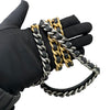 This is an authentic Chanel 19 Round Clutch With Chain Mini Lambskin in Black. This chic shoulder bag is made of lambskin leather. This round handbag features a leather threaded chain-link shoulder strap and a Chanel CC logo on the front. The zipper opens to a red fabric interior with small flat pockets.