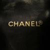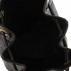 The Chanel CC Lambskin Leather Backpack in Black features a lambskin leather body, flat back leather straps, a top drawstring closure, and an interior zip pocket.