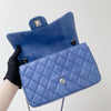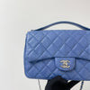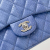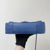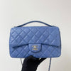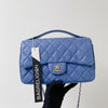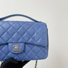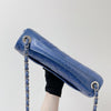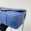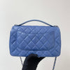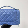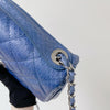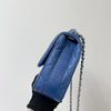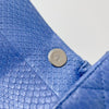 This Chanel Easy Carry Medium Snakeskin Flap is crafted in python-leather in blue featuring a CC turn-lock and chain in silver hardware.