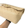 The Chanel Jumbo Caviar Classic Single Flap bag is made from Caviar leather in a beautiful Beige colour finished with Gold hardware. This classic beauty combines sophistication with versatility. It can be worn on the shoulder or as a long cross-body and fits all your daily essentials. A classic style, that will increase in value each year.