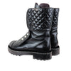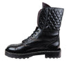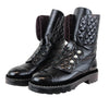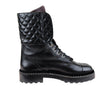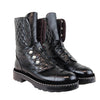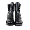 Pearl Combat Boots Crackled Calfskin Velvet Black Size 38
