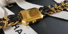 This piece is a fusion of elegance and contemporary charm, with the case held by a chain-link bracelet woven with leather. This watch is a mark of beauty, class and style.
