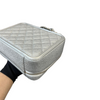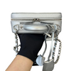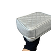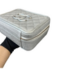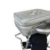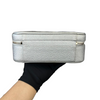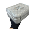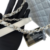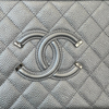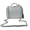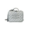 This is an authentic Chanel Vanity Case Medium in Silver. This chic stylish bag is crafted of diamond quilted caviar leather in silver. The elegant shoulder bag features a silver chain link leather threaded shoulder straps and a large Chanel CC stitched logo on the front. The two zippers open all around to a matching leather interior with a zipper pocket.