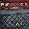 This is an authentic Chanel Single Flap Small Lambskin Quilted in Black. This bag is crafted of calfskin leather. The bag features a gold chain leather threaded shoulder strap and a gold Chanel CC logo on the front flap. This opens to a burgundy leather interior with zipper and patch pockets.
