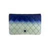 This is an authentic Chanel Wallet on Chain WOC Lambskin in Blue Ombre. This stylish chain wallet is crafted of Lambskin leather. The bag features a silver chain shoulder strap threaded with leather and a matching silver CC logo on the flap. This opens to a compact matching leather interior with card slots, and a zipper compartment.