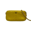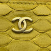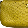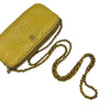 This is an authentic Chanel Wallet on Chain WOC Python Snake Skin in Yellow. This stylish wallet is crafted of python leather. The bag features a gold leather threaded chain link cross-body strap and a gold Chanel CC logo. The bag features two top zippers that open to a matching interior with card slots.