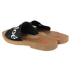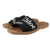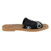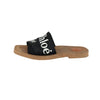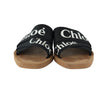 Logo Ribbon Woody Flat Sandals Canvas Black Size 38