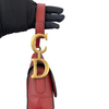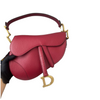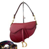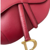 This is a genuine Christian Dior Saddle Bag in Burgundy color with Gold Hardware. Crafted with calfskin leather. It has a saddlebag shape and a short leather shoulder strap with stylish brass CD anchors. There's a noticeable Dior "D" charm hanging from the front. Inside, you'll find a matching suede interior with a zipper pocket. Paired with an additional strap, blink and you’ll miss this great deal!