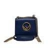 This is an authentic Fendi F is Fendi Small Kan Vitello Century in Blue. This stylish shoulder bag is crafted of smooth calfskin leather. The bag features the F is Fendi logo on the crossover flap, a shoulder strap, and silver and gold hardware. The bag opens with a magnetic bar microfiber interior with a small patch pocket.