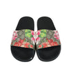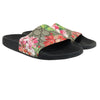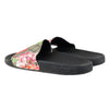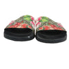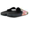 This is an authentic pair of Gucci Blooms Slide Sandals GG Supreme Monogram Beige in Size 38. These chic sandals feature a black rubber sole with crisscross Gucci monogram canvas straps in beige, accented with a colorful floral design overlay.
