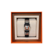 This Hermes Medor in 27MM size small is crafted of stainless steel and opaline silver dial, with a long Epsom strap.