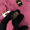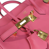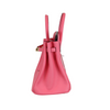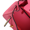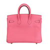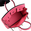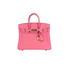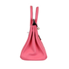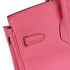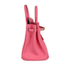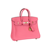 This is an authentic Hermes Swift Birkin 25 in Rose Azalee. This exquisite handbag is made from supple pink swift leather. It has rolled leather top handles, a frontal flap with strap closure, and gold-toned hardware, including keys in the clochette. Inside, you'll find a matching leather interior with zippers and pockets for your convenience.