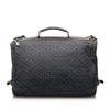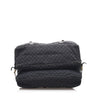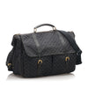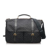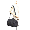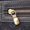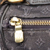 The Louis Vuitton Monogram Mini Lin Denise Blue features a monogram cotton body, a top handle, an adjustable leather strap, exterior compartments, a front flap with buckle closures, and an interior zip pocket.