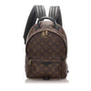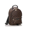 The Louis Vuitton Palm Springs PM features a monogram canvas body, a front exterior zip pocket, a paded leather top handle, paded back straps, and a top zip closure.