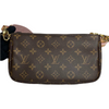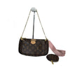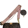 Crafted in beautiful canvas leather with gold LV Hardware, the Multi-Pochette is perfect for our fashionistas that aren't afraid to step out of the box and rock a trendy model. It comes with two straps; one chain strap and the other a wide "LOUIS VUITTON" embroidered fabric strap, making this bag versatile enough for your Sunday morning brunches or your Friday night's out.