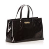 The Louis Vuitton Vernis Wilshire PM Purple features a vernis leather body, flat handles, a top lobster claw closure, and an interior zip pocket.
