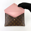 The Kirigami Pochette is in monogram print with a pink interior. This pouch is the largest one in the bunch and can hold your tablet. Who says bringing a tablet around is not fashionable? Definitely not Louis Vuitton!