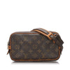 The Louis Vuitton Marly Bandouliere features a monogram canvas body, an adjustable shoulder strap, and a top zip closure.