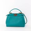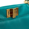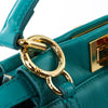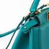 The Fendi Peekaboo bag is luxuriously crafted using Nappa leather in turquoise. This tote features a sturdy, reinforced leather handle with gold hardware links and turn lock. The bag can be worn as a cross-body shoulder bag, or as a tote bag. Will surely complement any day-to-night look!
