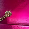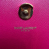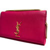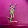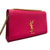 This is an authentic Saint Laurent Kate Satchel Medium Grain De Poudre in Pink. This stylish bag is made of grained calfskin leather. The bag features a gold bijoux chain shoulder strap and a frontal flap with a gold YSL logo. The flap opens to a suede interior with a small patch pocket.