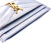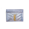 This Saint Laurent Wallet card case allows you to hold a total of 4 card slots (2 on each side) with one main slot compartment in the middle. It features their iconic YSL Monogram in gold hardware. Made with embossed grain de poudre, this opalescent colour will stand out to make it easy to find in your purse! It will fit perfectly in all of your small purses or just tuck it safely away in your pocket!