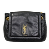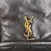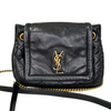 This is an authentic Saint Laurent Nolita Mini Lambskin Quilted Monogram in Black. This elegant shoulder tote is crafted of diamond-quilted lambskin leather. The bag features an aged gold chain-link shoulder strap with a leather shoulder pad and a prominent aged gold YSL monogram detail on the crossover flap. This opens to a black fabric interior with a pocket.