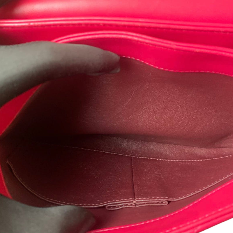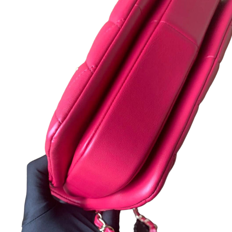 This Chanel Small Trendy CC Flap with diamond Quilting is a stunning piece. It features a lambskin leather exterior, a leather top handle, and a gold toned chain and leather strap. This beauty can be worn as a top handle, or a shoulder bag.