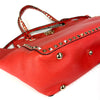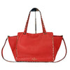 Add an elegant final flourish to your look with Valentino’s red grained-leather tote. It’s crafted in Italy with slender top handles, a detachable shoulder strap, then framed with the house's hallmark gold-tone metal Rockstuds – originally inspired by the notches on Roman doors. Suede lining and a single zip-fastening pocket complete the piece.