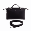 With a geometric silhouette, minimalistic silver logo and design, this is your perfect everyday bag. Wear yours with anything from dresses to jeans. This handbag is made from soft black calfskin with double handle, charm, detachable adjustable shoulder strap. Silver-colored Fendi logo. Zipped top and palladium metalware. Inside with 2 compartments divided by a zipped partition with 2 pockets.