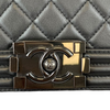This So Black Chanel Boy old medium bag in black calfskin leather features beautiful black hardware. It can be worn either as a shoulder or crossbody bag. You do not want to miss the chance to own this!
