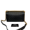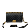 This Boy bag features a beautiful quilted lambskin body and gold hardware, its an absolute must for any luxury lover.  Its black color makes this a statement bag for everyday wear.  Our advice? Get this piece before it's too late!