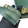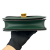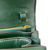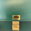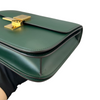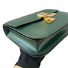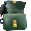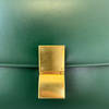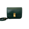 This is an authentic Celine Box Calfskin Medium Classic Box Flap in Green. This super chic shoulder bag is crafted of smooth calfskin leather in dark green. The bag includes a detachable leather shoulder strap and a gold press lock on the front flap. Inside, there's green leather, compartments, a zipper pocket, and patch pockets.