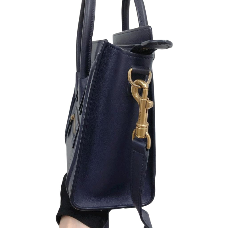 The Celine Smoth Leather Nano Luggage Tote has been crafted in the most luxurious blue leather. It features a calfskin leather exterior and interior and rolled handles. It also offers zipped closure, inner zipped pocket and double flat pocket, as well as an outer zipped pocket on front.