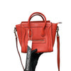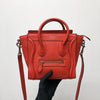 The Celine Drummed Leather Nano Luggage Tote has been crafted in the most luxurious red leather. It features a calfskin leather exterior and interior and rolled handles. It also offers zipped closure, inner zipped pocket and double flat pocket, as well as an outer zipped pocket on front.