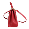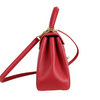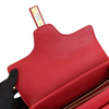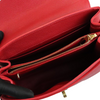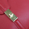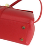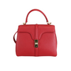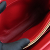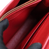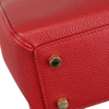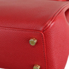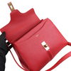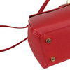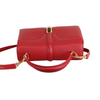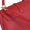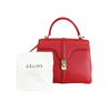 This is an authentic Celine Grained Calfskin Small 16 Top Handle Bag in Red. This bag is made of grained calfskin leather in red. The bag is equipped with a leather top handle and an optional shoulder strap adorned with gold hardware. The twist-lock closure opens to a partitioned red leather interior with zipper and patch pockets.