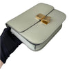 Make a big statement with this understated piece! This Celine Classic Box Bag is crafted of calfskin leather in sage green with a structured and spacious silhouette; perfect for all your daily essentials. The bag details a waist-length shoulder strap and a front facing flap with a gold-coloured press-lock. Who said you needed a flashy bag to stand out?