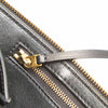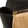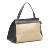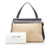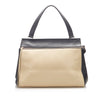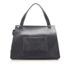 The Celine Medium Edge features a leather body, an exterior front zip pocket, flat leather straps, a top zip closure, and interior slip pockets.